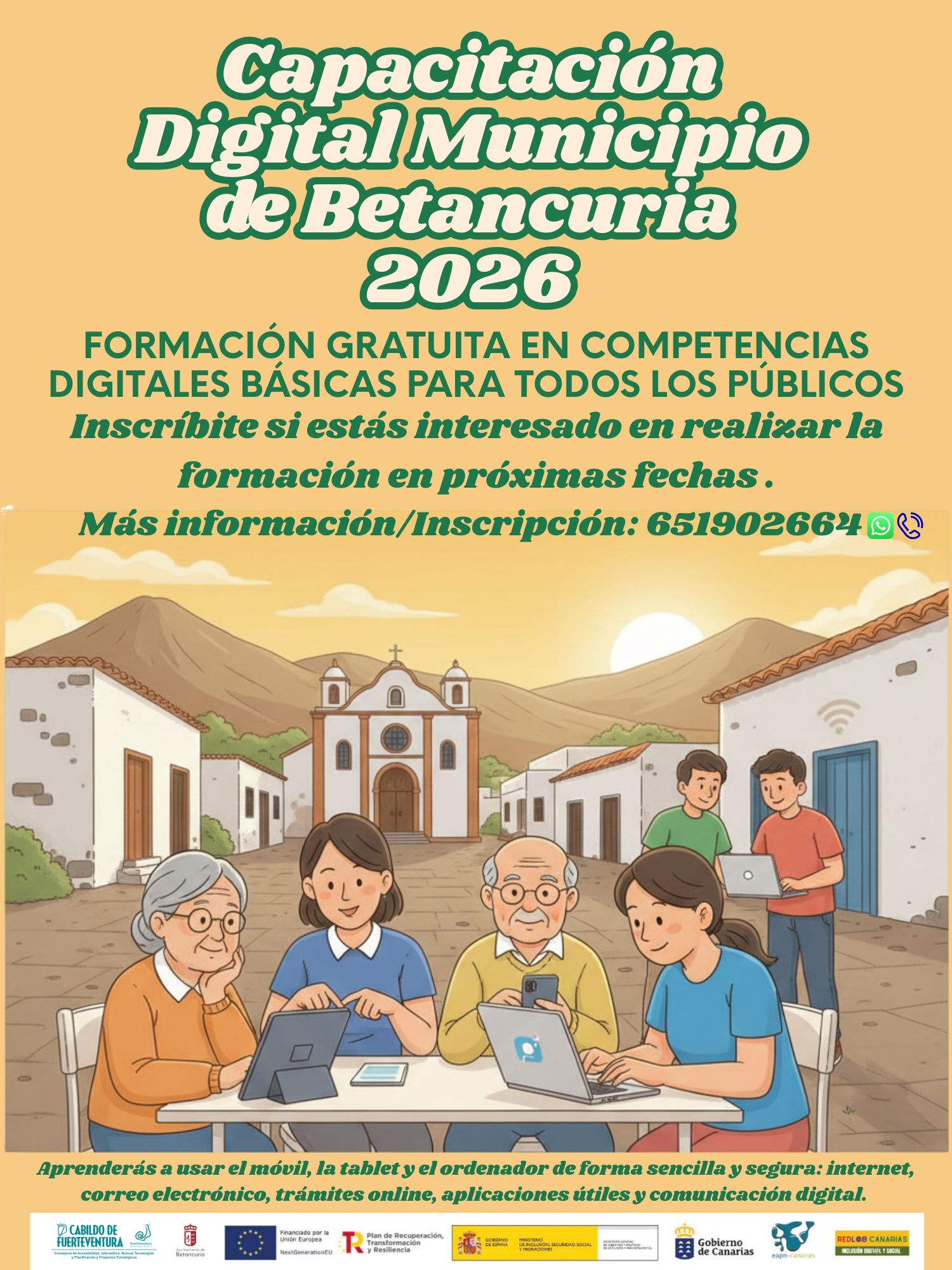 El Cabildo de Fuerteventura, a través de la Consejería de Nuevas Tecnologías, ha anunciado la apertura de nuevas ediciones del programa de formación en competencias digitales básicas destinado a la ciudadanía del municipio de Betancuria.